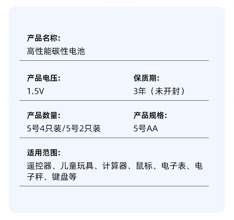 高性能碳性电池(5号4只装)